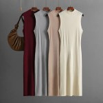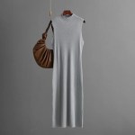 Be the first to review “Knitting Dress Women Sheath Dresses Half High Collar Sleeveless Slim Stretch Knitted Sundress Office Lady Vestidos”