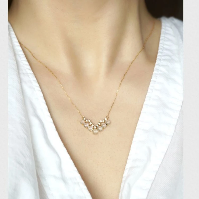 Natural Jade Chalcedony White Bead Small V-shaped necklaces Pendant Fashion Light Luxury clavicle chain Banquet jewelry