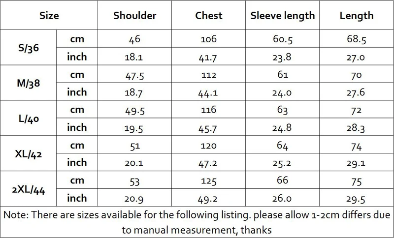 - Please note the jacket would shrink a little in the first washing, inspect the measurements chart below to ensure a proper fit