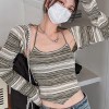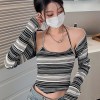 Tonngirls Grunge Tie Dye T Shirt Women Two Piece Tops Y2k Vintage T-shirt E Girl Striped Crop Tops Lace Up Tee Shirts Beach Wear