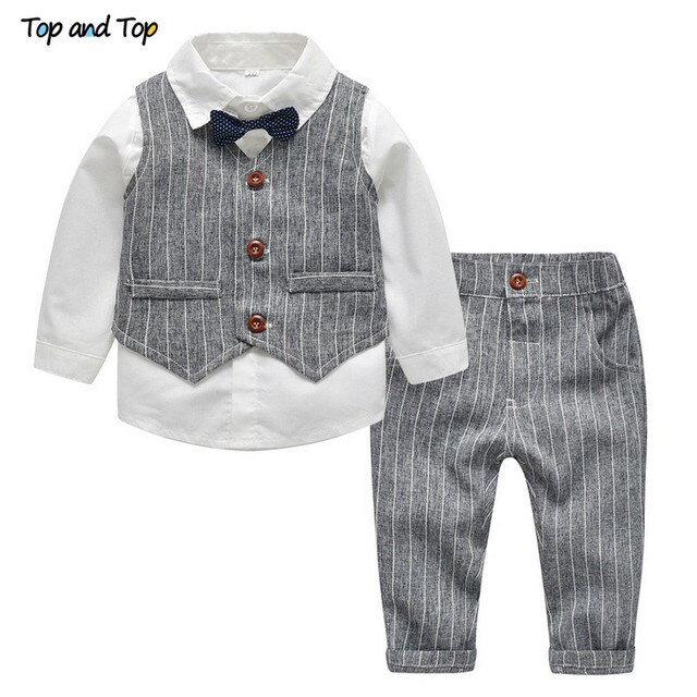 Top and Top Fashion Autumn Infant Clothing Set Kids Baby Boy Suit Gentleman Wedding Formal Vest Tie Shirt Pant 4Pcs Clothes Sets